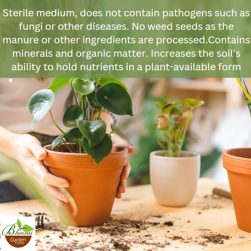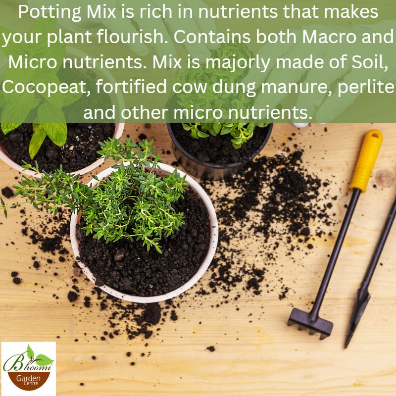 Bhoomi’s Potting Mix is rich in nutrients that makes your plant flourish. Contains both Macro and Micro nutrients. Mix is majorly made of Soil, Cocopeat, fortified cow dung manure, perlite and other micro nutrients.