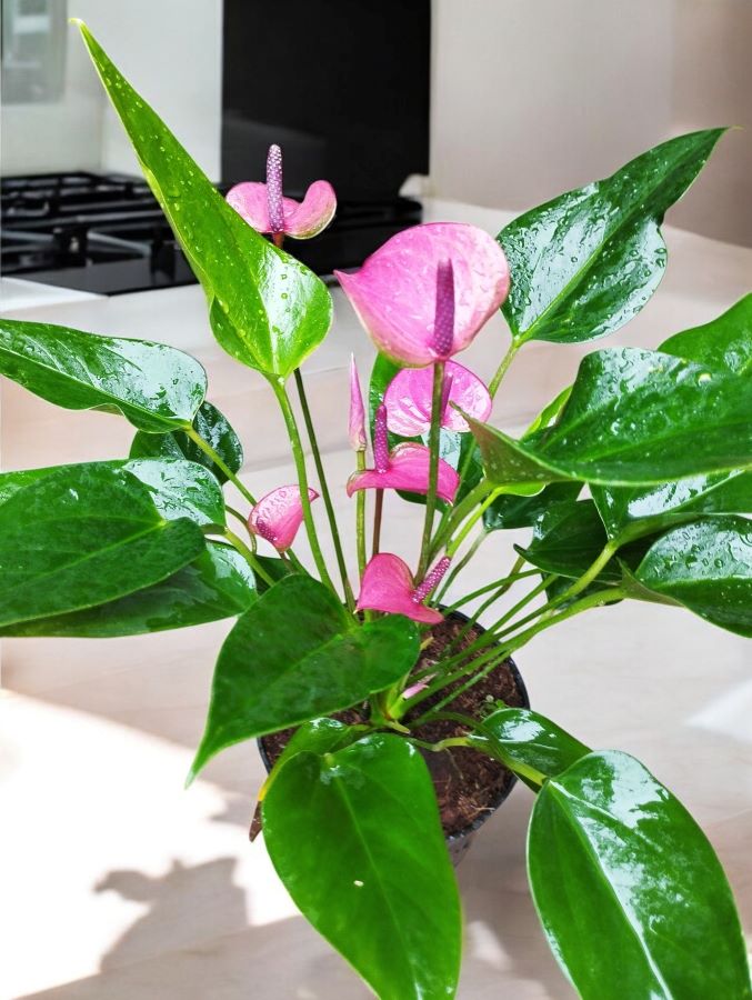 • Appearance: Features heart-shaped red spathes and a yellow-green spadix with shiny, deep green foliage.