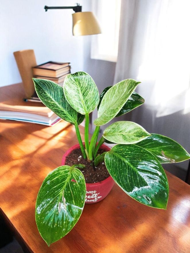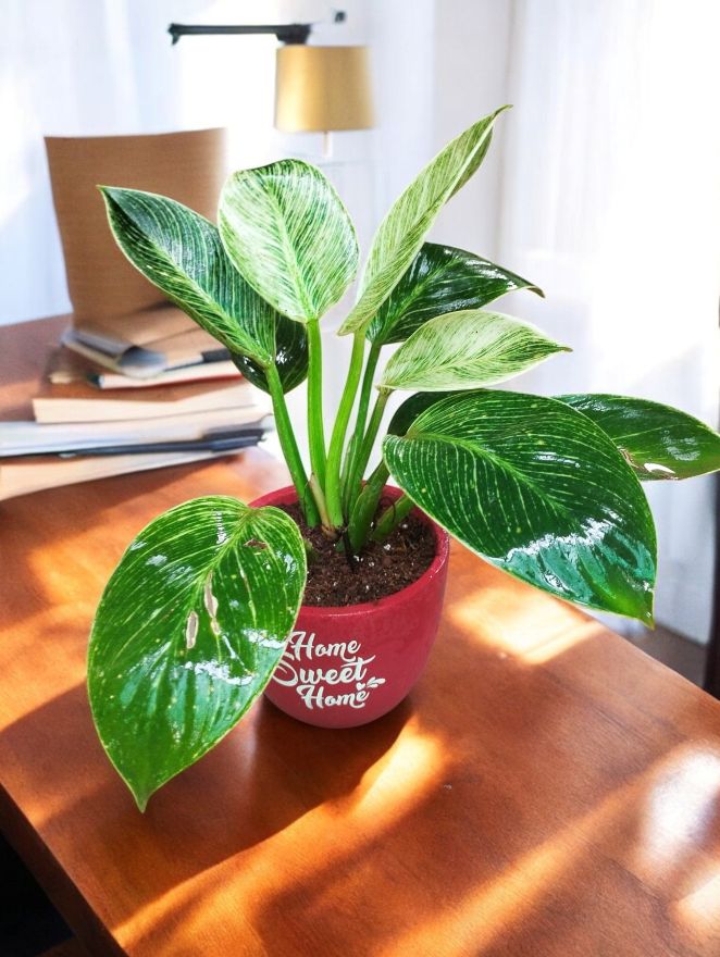 Prefers bright, indirect light to maintain vibrant variegation.