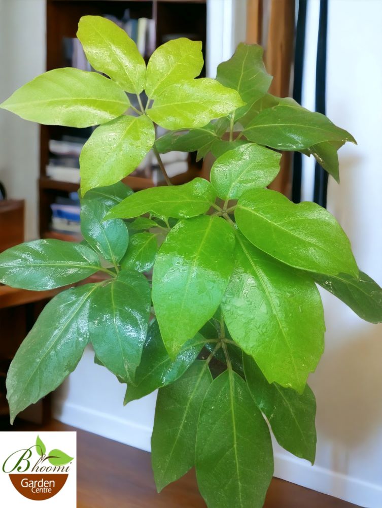 Brassia Yellow or Schefflera ‘Amate Soleil’ is a very hardy plant and attractive with large glossy oval compound leaves that remain chartreuse in color throughout the year. Brassia plant is an evergreen tree that has palmately compound medium green leaves in groups of seven leaflets. It is usually multi-trunked, and the flowers develop at the top of the tree (not at home).It is one of the most popular house plants throughout the world.