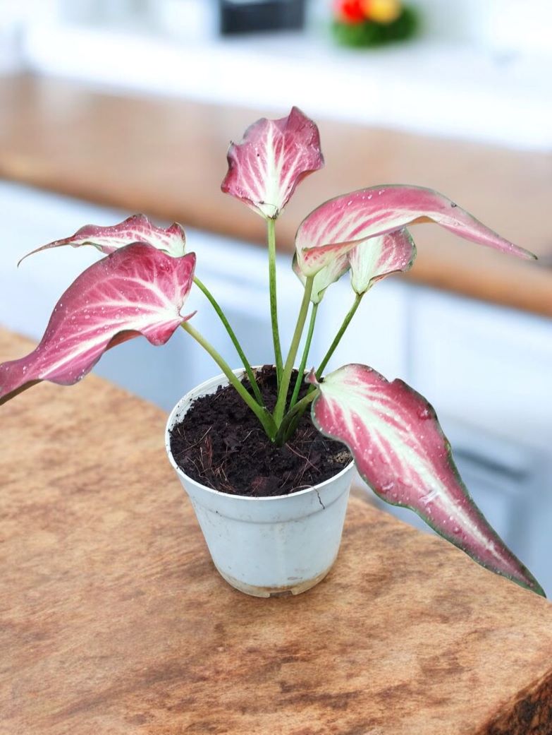 - High Humidity: High humidity is essential for Caladium ‘Zap’. Aim for a humidity level of 50-80%. Placing the plant in naturally humid areas, such as bathrooms or kitchens, can help maintain the necessary moisture levels.