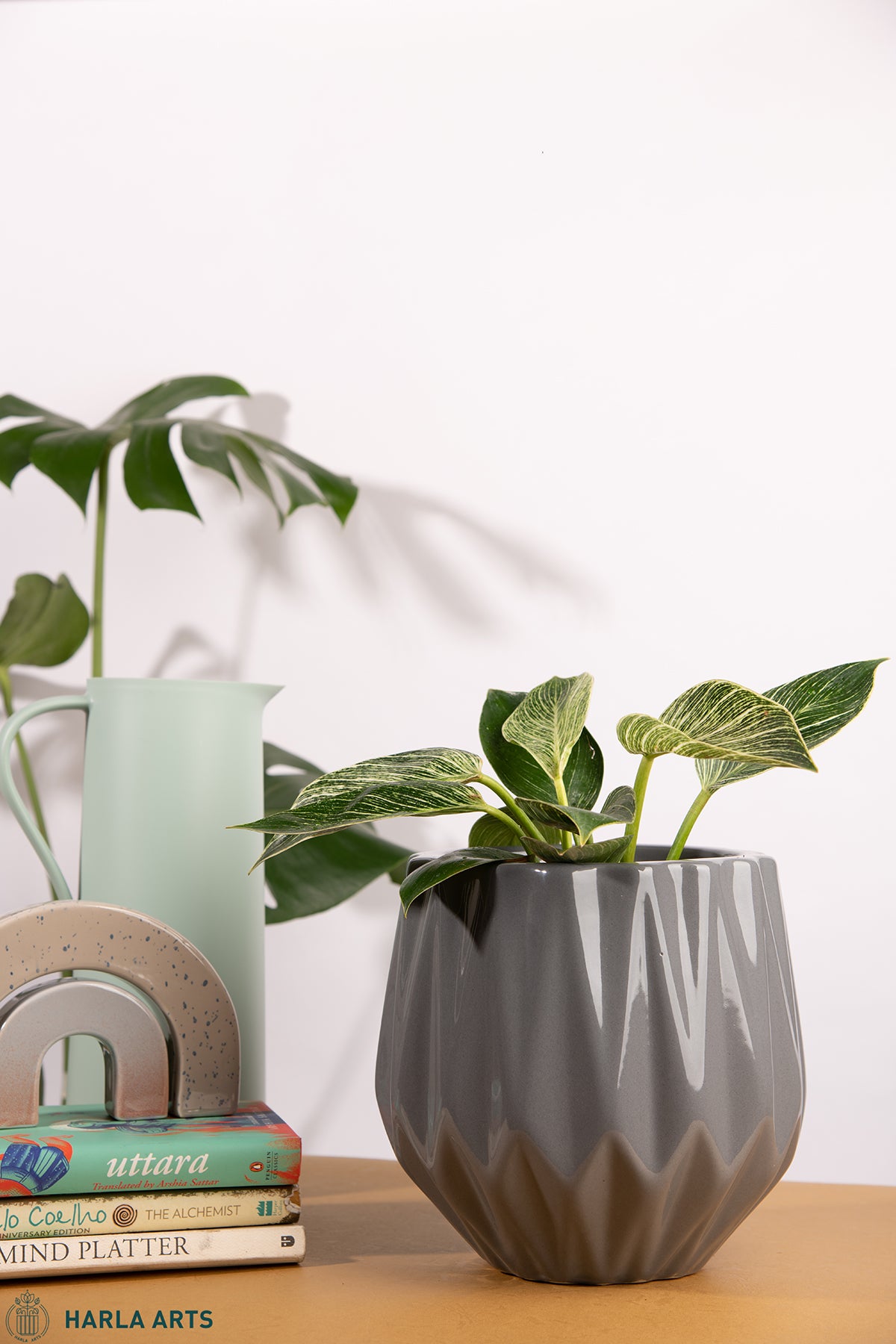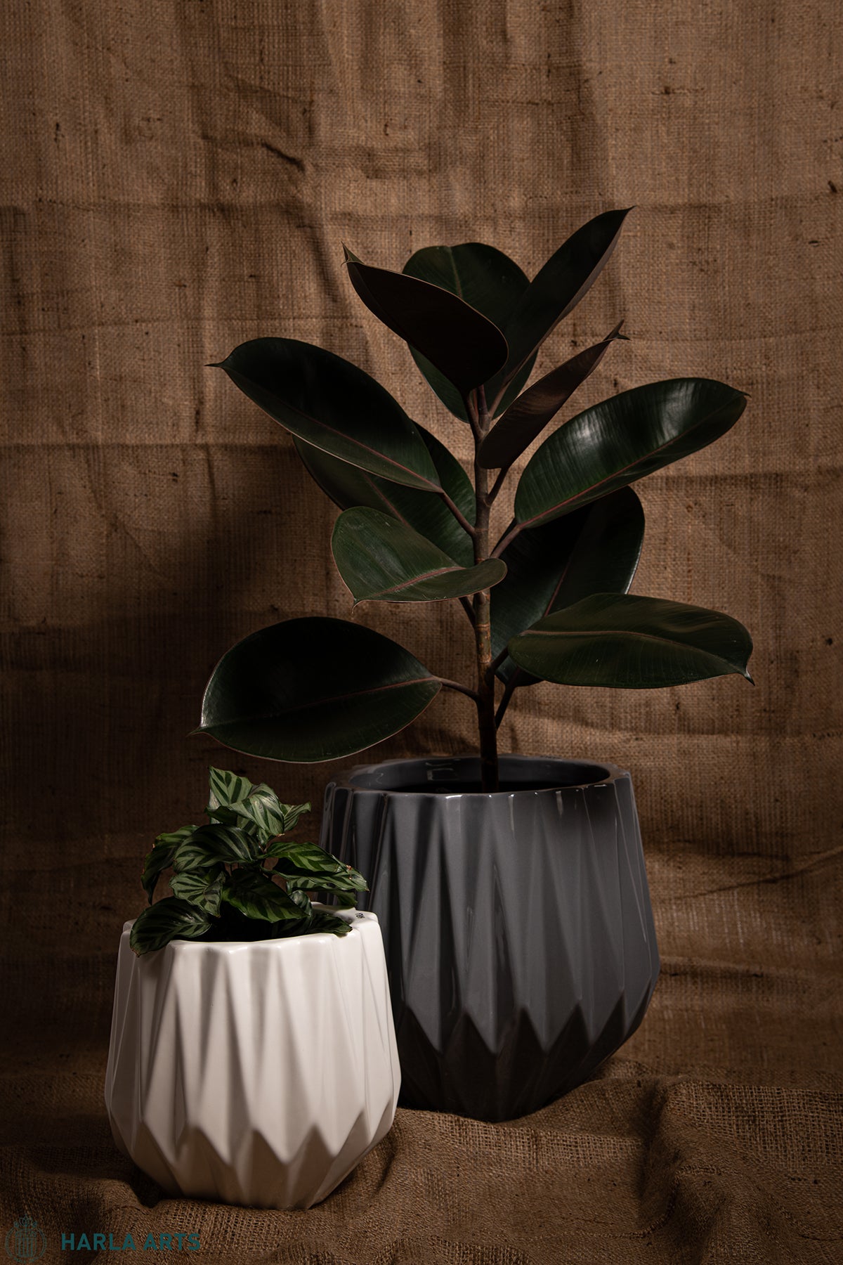 Ceramic Design Pots Precious Horcrux design is inspired from the ‘Tabla’, a membranophone percussion instrument used in traditional, classic and folk music. The laces with hoops and wooden thongs on the sides of the tabla are crafted into the design of this exceptional planter. The precisely carved edges on the surface is what makes these planters unique.