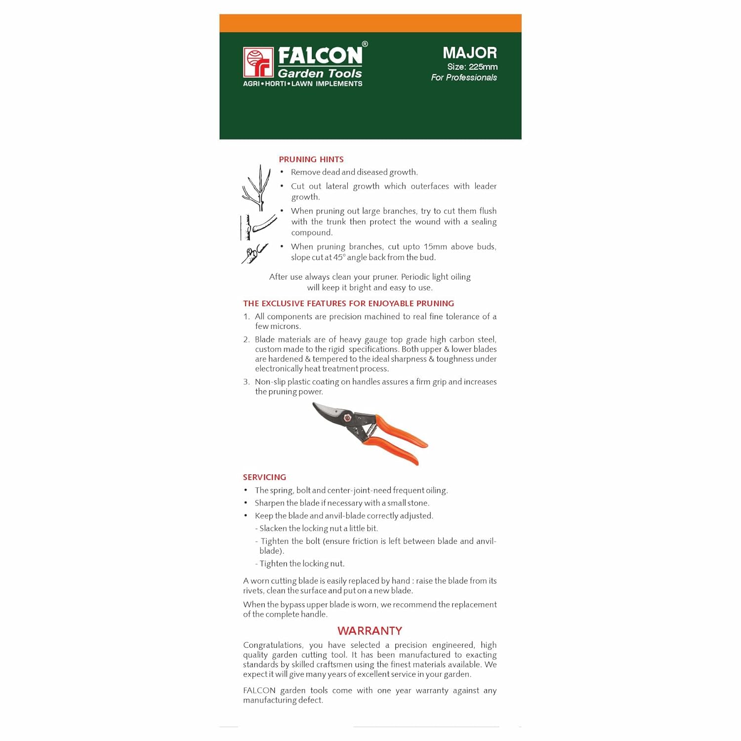 Falcon Pruning Secateur Major (Size 225mm)