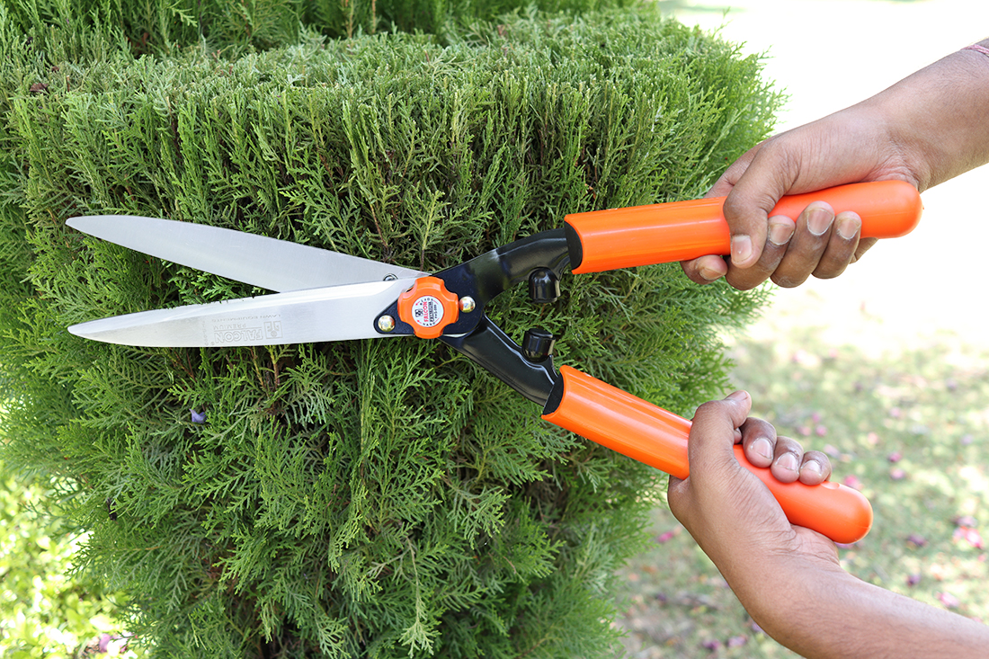 Useful for trimming hedges when neat wall of foliage is required.
