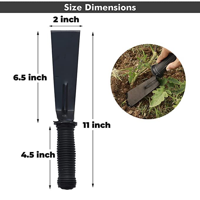 - Easy to store and clean. The 3 inches tool can penetrate the soil helping to dig for planting, transplating and removing weeds with roots.