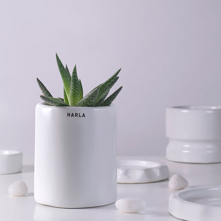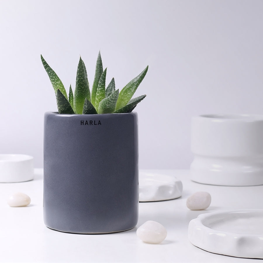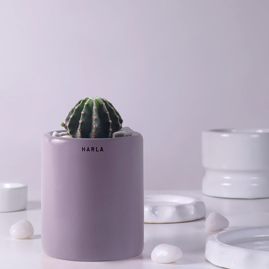 Indoor Ceramic Plant Pots Lilac Stories – Extra Small designed for tiny plants to place on your study desk. This design is available in 12 different colours and 3 different shapes to make a beautiful cluster of plant babies in lovely pots.