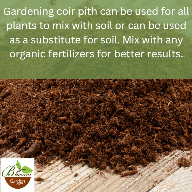 • Gardening coir pith can be used for all plants to mix with soil or can be used as a substitute for soil. Mix with any organic fertilizers for better results.