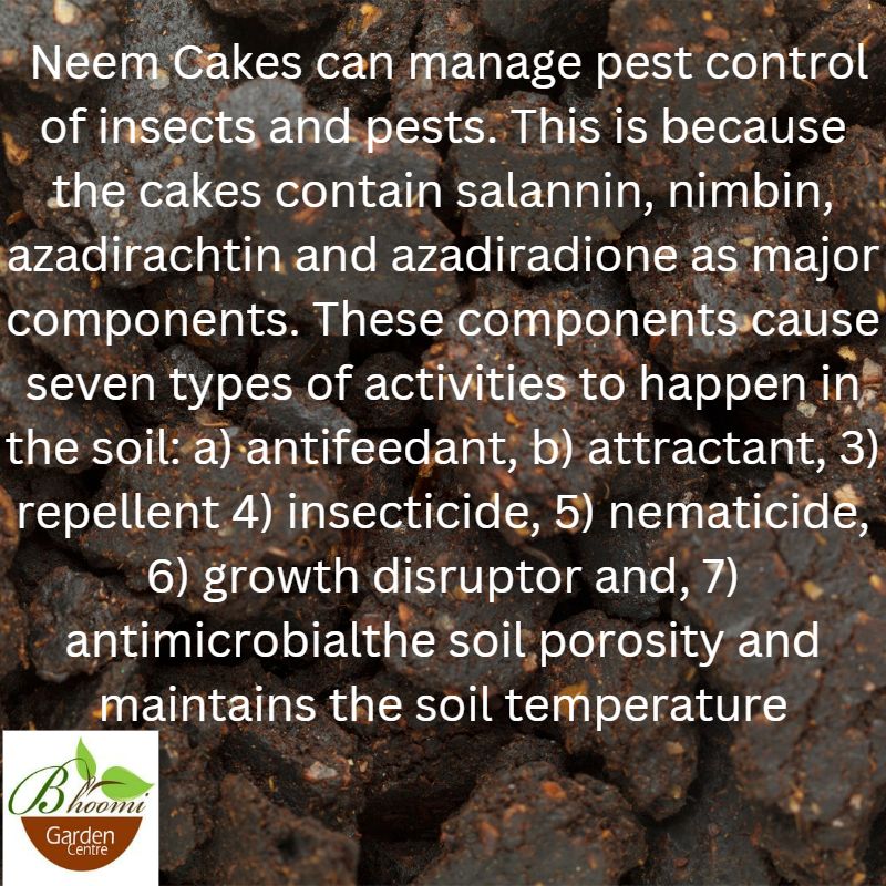• HOW TO USE: You can mix them with other fertilizers that are organic. Neem cake is a natural nitrification inhibitor. It increases the availability of nitrogen. They improve the texture of your garden soil. Their organic nature and water holding capacity also help to keep the soil aerated. This is a must for better root development