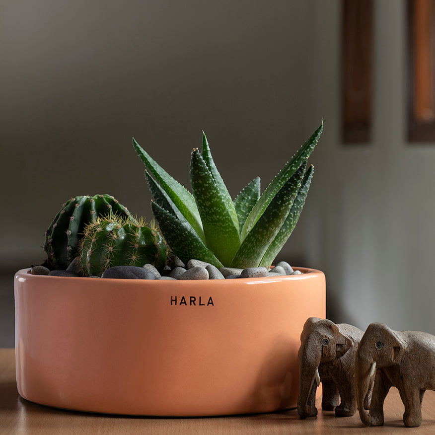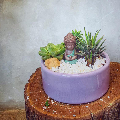Round Ceramic Pot Lilac Stories-Flat is suitable for planting 3-4 succulents in the planter. This design is available in 12 different colours and 3 different shapes to make a beautiful cluster of plant babies in lovely pots.