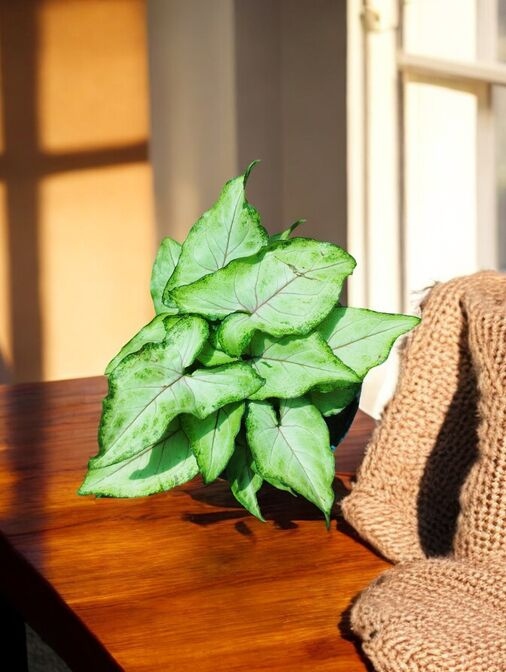• Bright, Indirect Light: Syngonium ‘Berry Allusion’ thrives in bright, indirect light. Too much direct sunlight can scorch the leaves, while too little light can dull the pinkish hue and slow growth.