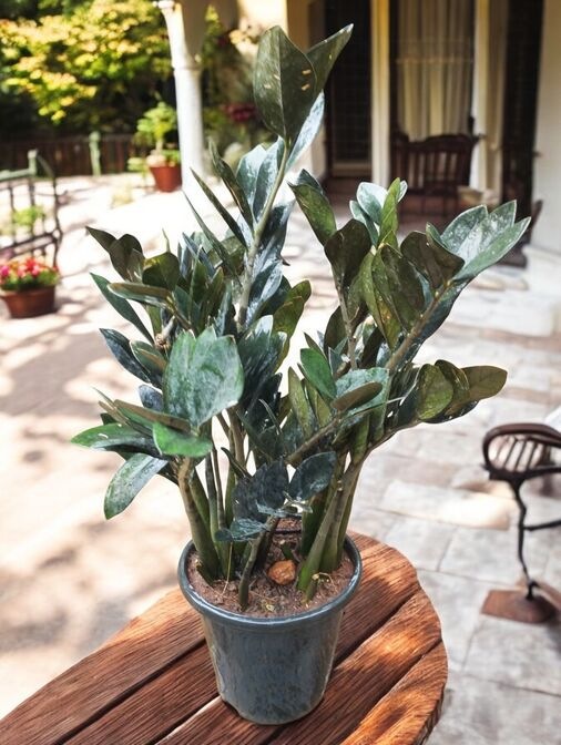 The Zamia Black Raven Plant is a unique, stylish houseplant that adds a touch of sophistication to any space with its glossy, dark foliage. Its low-maintenance care requirements make it perfect for both beginners and busy plant owners. With minimal watering, indirect light, and occasional feeding, the Black Raven ZZ Plant will reward you with its dramatic, almost-black leaves, making it a true statement piece in any home or office.